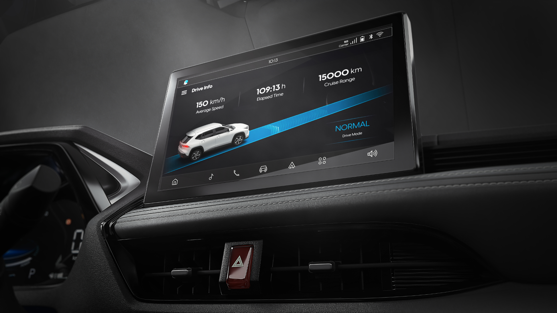 Una pantalla amplia de 10” para una mejor visualización de mapas, medios y funciones del vehículo, con diseño moderno y alta definición.